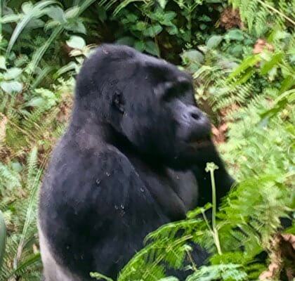 “After about an hour of hiking and John communicating regularly with the trackers by radio, he pointed to a pile of excrement on the gourd. He looked up at me, told me what we were staring at, and said, “Now I guarantee that you will see mountain gorillas!” My heart was beating fast from the…